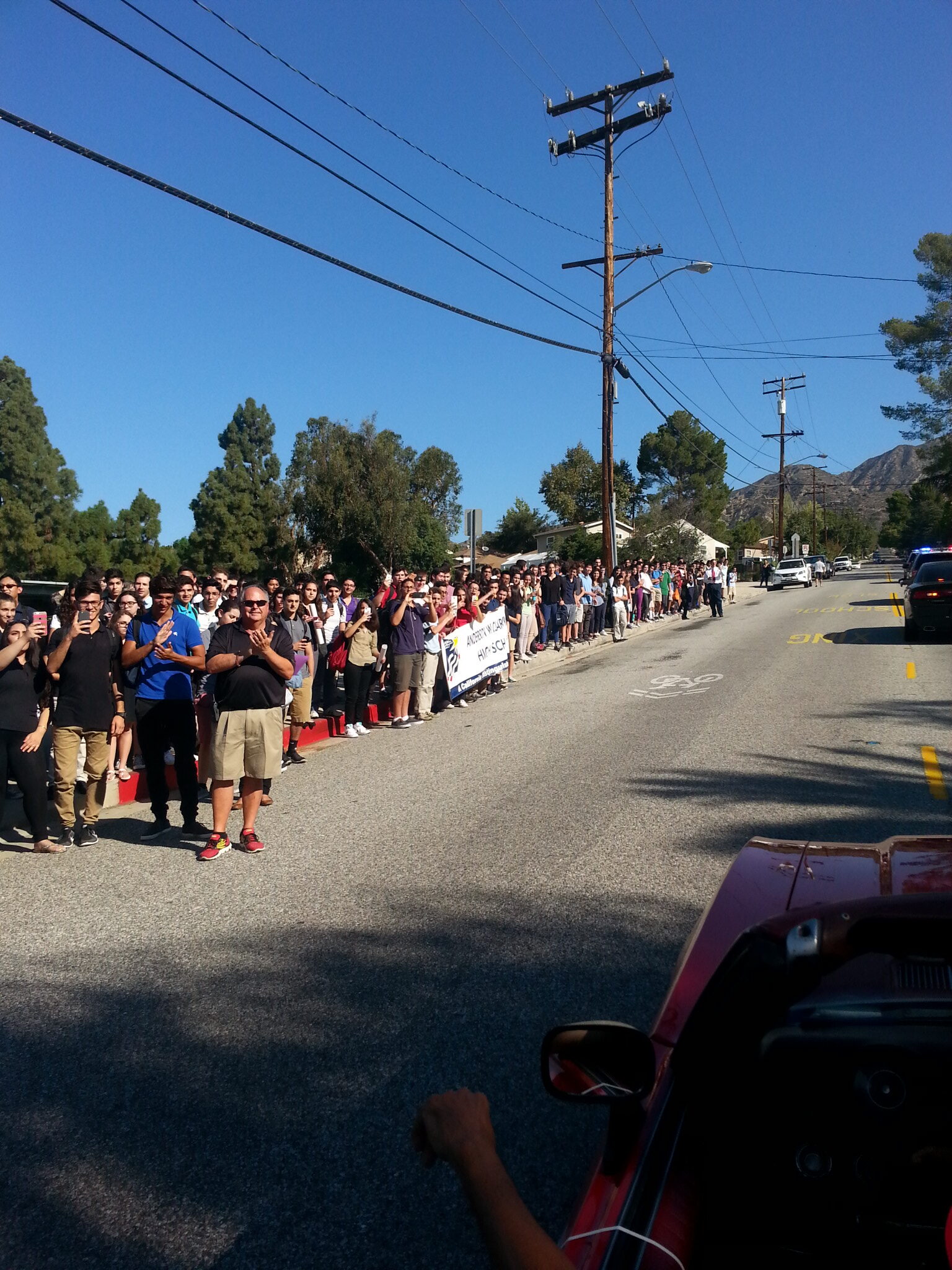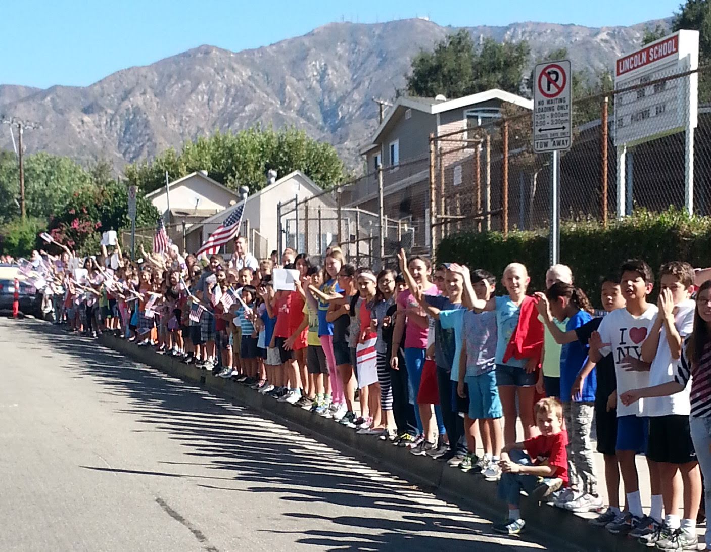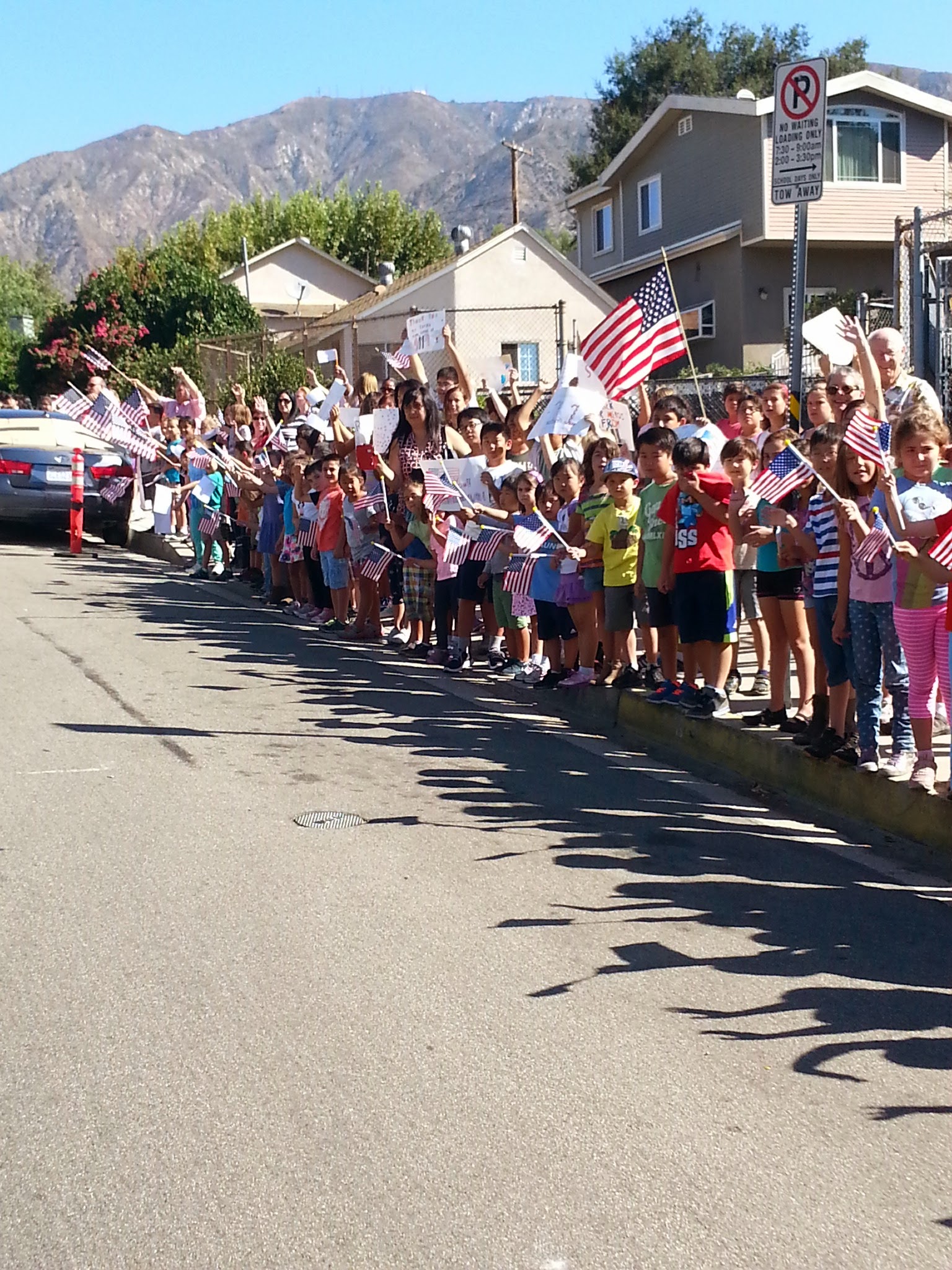 What makes this tradition so powerful is the way it engages our youth. At every stop, students pour out of classrooms to line the streets, waving American flags in tribute. The motorcade passes Mountain Avenue Elementary, Rosemont Middle School, Monte Vista Elementary, Valley View Elementary, Clark Magnet High School, Dunsmore Elementary, St. James School, Lincoln Elementary, and Crescenta Valley High School. Into Glendale Sparr Height area passing by Fremont Elementary. Then as it passes through Montrose Shopping Park on it’s way to La Canada to pass by, Paradise Canyon Elementary, La Cañada Elementary, and Palm Crest Elementary all whils kids and cummunity members stand curbside in respect.