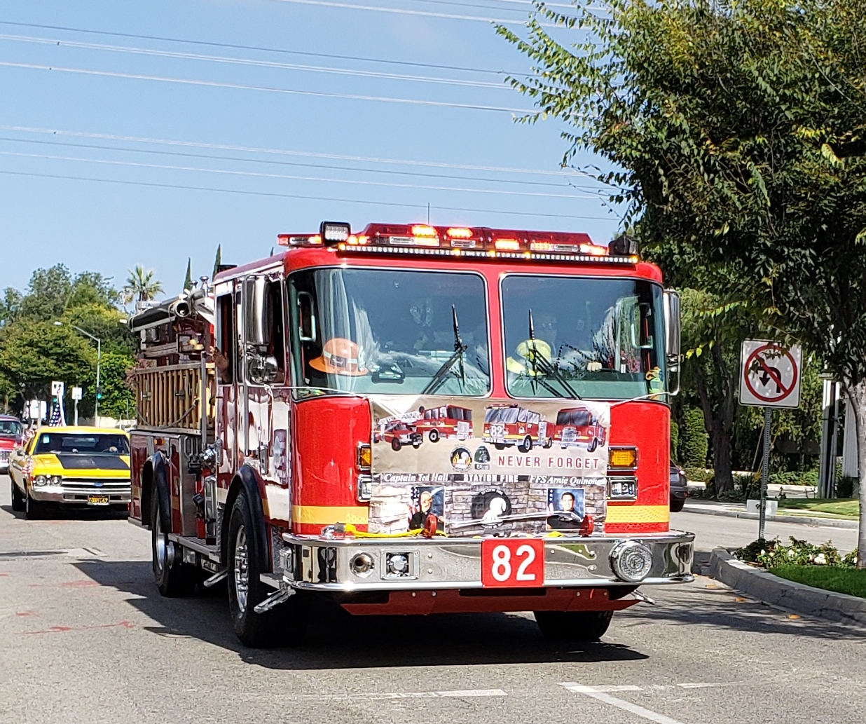The motorcade begins at the Ralph’s parking lot on the corner of Foothill Boulevard and Rosemont Avenue—precisely timed with the moment the first tower fell. As the bells of St. Luke’s Church ring, the cars and emergency vehicles set out, making their way past schools, fire stations, and landmarks throughout La Crescenta and La Cañada.