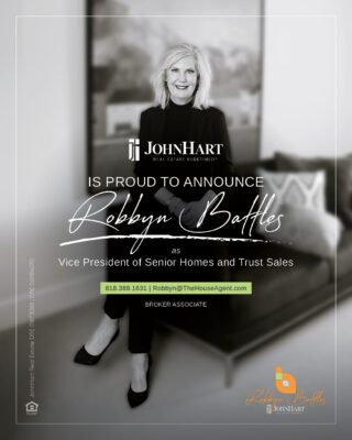 Recognizing this deep experience and unwavering commitment, JohnHart Real Estate CEO Harout Keuroghlian collaborated with Robbyn to form a new division that would formalize what she was already doing so naturally. In late October 2025, JohnHart Real Estate announced Robbyn Battles as the Vice President of Senior Homes and Trust Sales. This decision honors her expertise and passion for this growing demographic.