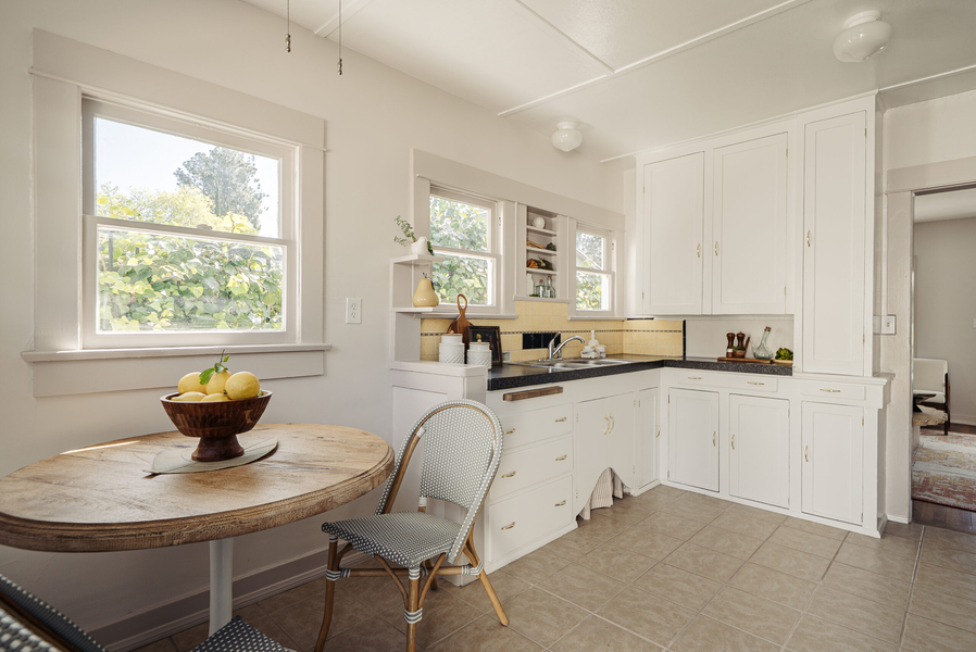 2843 Los Olivos Lane in La Crescenta may be compact, but it lives bigger than expected. Between the welcoming front porch with views of the Verdugos and the vintage kitchen with its signature yellow tile and sweet eating area, the space feels genuine, warm, and memorable.