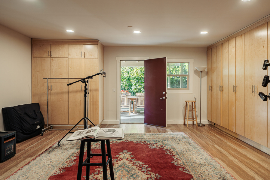 The detached studio adds another layer to the story. Beautifully finished with custom cabinetry, it offers a creative space that feels tucked away, inspiring, and full of possibility. Whether someone dreams of photography, art, design, a private office, or simply a place to create and think, it gives this Pasadena property a feature that feels rare and meaningful.